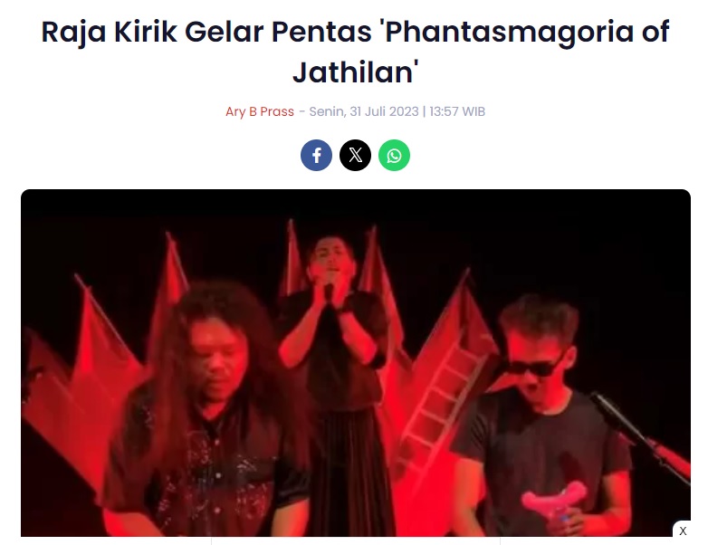 Hasil reportase atau liputan tentang acara ‘Phantasmagoria of Jathilan’ oleh Raja Kirik di situs web krjogja.com pada tanggal 31 Juli 2023.