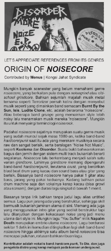 Artikel opini tentang sejarah Noisecore dalam bahasa Indonesia.