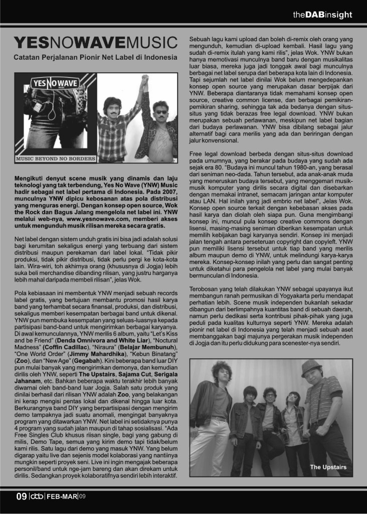 Artikel profil tentang Yes No Wave Music sebagai pionir Net Label di Indonesia.