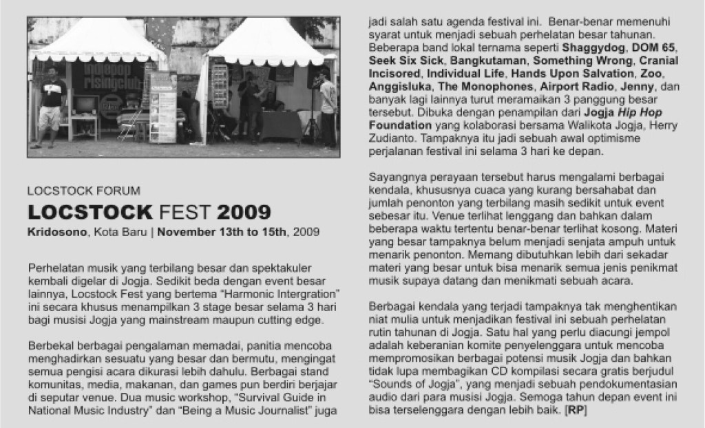 Artikel reportase tentang acara LockStock Fest 2009 oleh LockStock Forum yang melibatkan Seek Six Sick dan Zoo di Stadion Kridosono, Yogyakarta.
