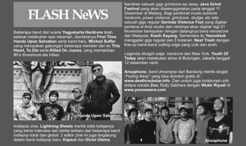 Berita tentang penyelenggaraan acara Next Trash oleh Yes No Klub dan perilisan album kolaborasi pertama Rully Shabara dan Wukir Suryadi.