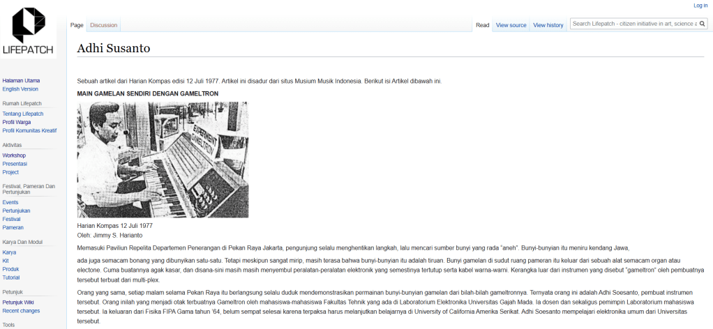 Kliping ini merupakan hasil saduran Lifepatch dari arsip artikel yang dirawat dan dibagikan oleh Museum Musik Indonesia. Saduran ini juga memuat 2 kliping dari Harian Kompas yang memberitakan pandangan Adhi Susanto terkait perjumpaan antara teknologi dan kebudayaan.