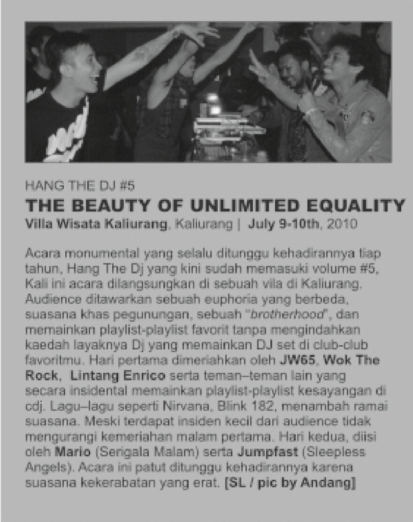 Reportase Hang The DJ Vol. 5 dari Dynamic Aural Bliss Magazine (Vol. 23, Juli-Agustus 2010)