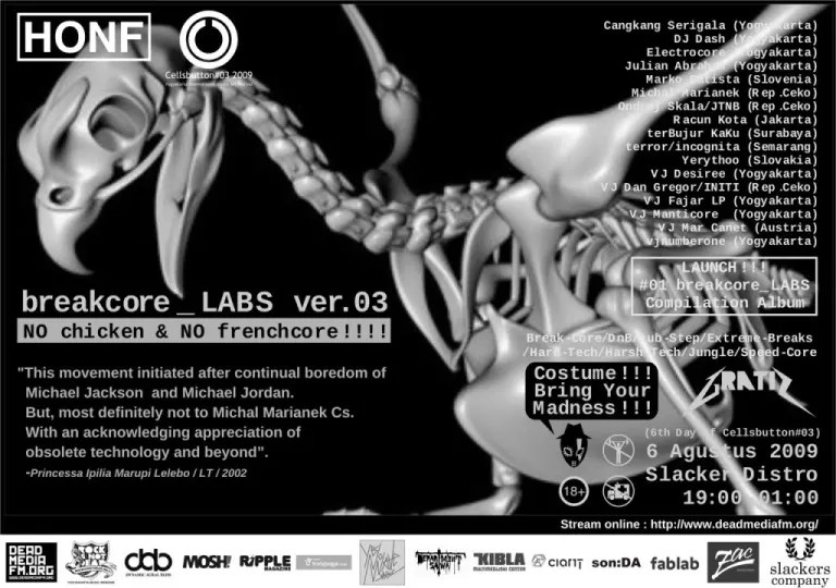 breakcore_LABS 0.3 – NO chicken & NO frenchcore!!!! adalah bagian dari acara rutin oleh breakcore_LABS yang juga merupakan bagian dari kolektif House of Natural Fiber.