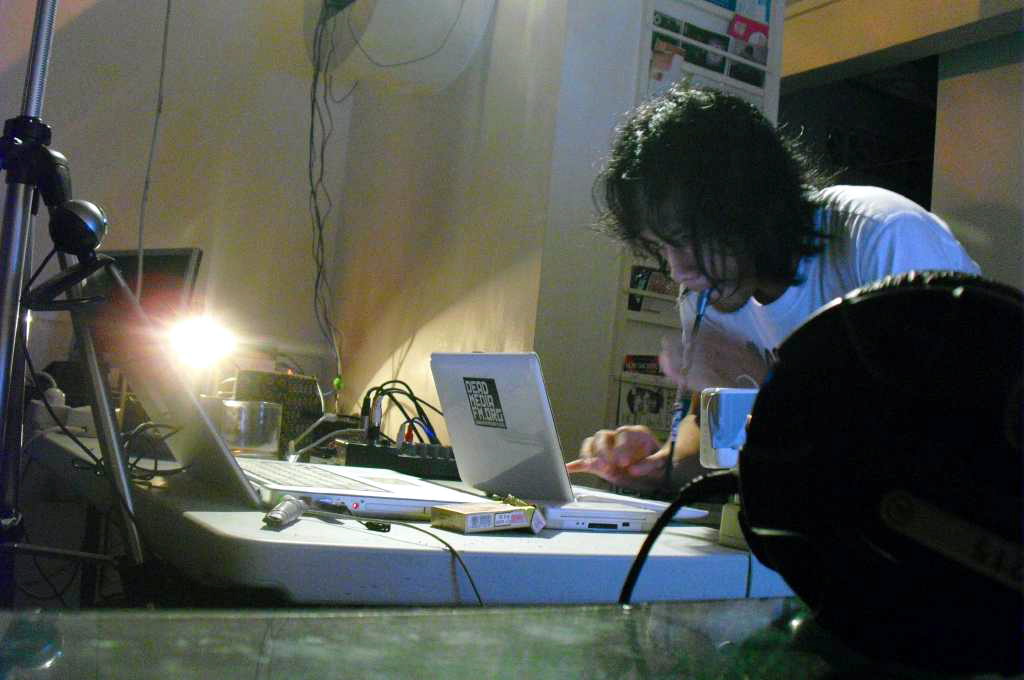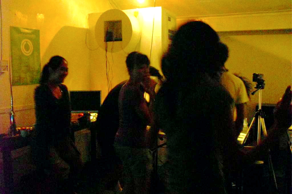 The event started at 9 o’clock of 31 December 2009. Inside HONF lab, Julian Abraham started the event with a composition of ambience and glitch music, inviting the audience to start the party. One by one the audience come from outside bringing the legendary local red wine “ANGGUR MERAH”. Music is getting louder, laughter is filling out the space, everyone has joined the party. Breakcore and Speedcore musics is playing as we waited for the new year to arrive. Cheers and hugs, for a new spirits of old dreams and new dreams as Liwoth (a collaboration between Krisna Widiathama and Ichan Harem) play their Noise and Scream music with using LDR oscillator sensors. Next stop, our own private beach in Siung!