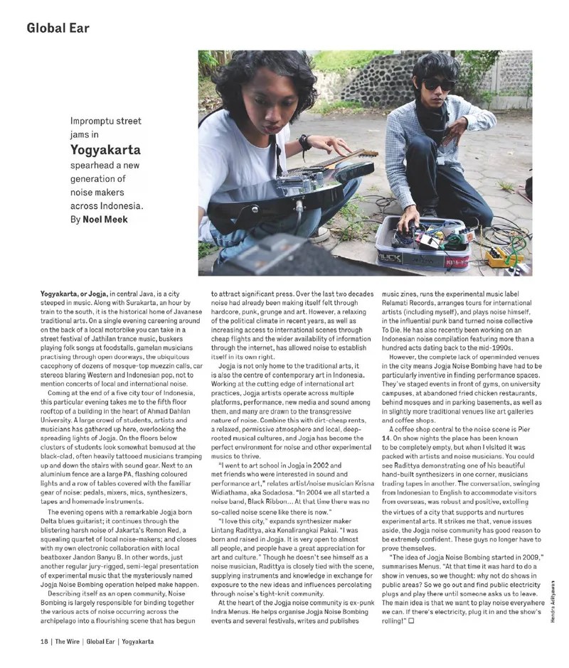 “The idea of Jogja Noise Bombing started in 2009,” summaries Menus. “At that time it was hard to do a show in venues, so we thought: why not do shows in public areas? So we go out and find public electricity plugs and play there until someone asks us to leave. The main idea is that we want to play noise everywhere we can. If there’s electricity, plug it in and the show’s rolling!”