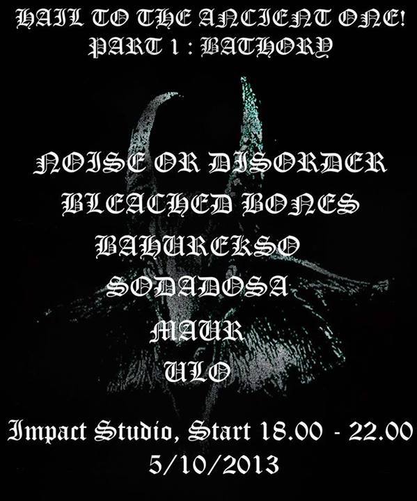| 5 Oktober | Hail To The Ancient One! – Part 1: Bathory | Noise Or Disorder, Bleached Bones, Bahurekso, Sodadosa, Maur, dan ULO | Impact Studio, Yogyakarta | [1] [2] |