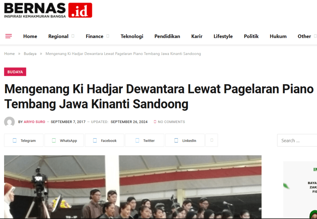 Karya fenomenal Ki Hadjar Dewantara ini pula yang kemudian memunculkan konsep pendidikan berbasis seni-budaya lokal khas Tamansiswa yang dikenal dengan nama “Metode Sariswara”. Inilah permainan piano tembang Jawa yang dimainkan pertama kali di benua Eropa oleh orang asli Indonesia dari tanah Jawa.