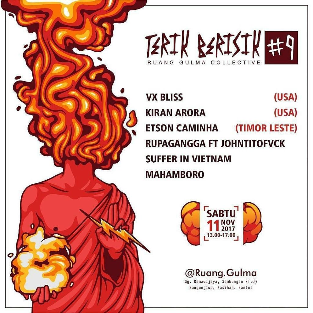 | 11 November | Terik Berisik #9 | VX Bliss, Kiran Arora, Etson Caminha, Rupagangga feat Johntitofvck, Suffer in Vietnam, dan Mahamboro | Ruang Gulma, Yogyakarta | [1] |