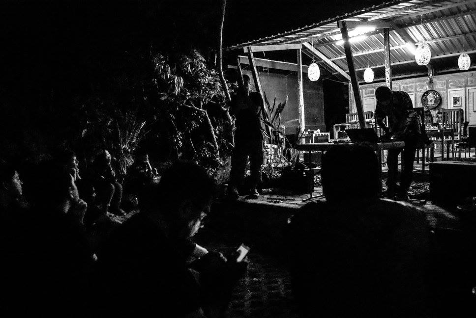 Petang berganti malam, Hakim Faizal pun tiba. Untuk set terakhir, kami gelar di ampiteater depan Kedai Kopi Bel dengan penampilan duet Fai dan Junichi. Dengan bebunyian nuansa dari perangkat elektroniknya, Fai mengiringi Junichi yang bereksperimentasi dengan segala pernak-perniknya yang ia bawa dari Jepang.