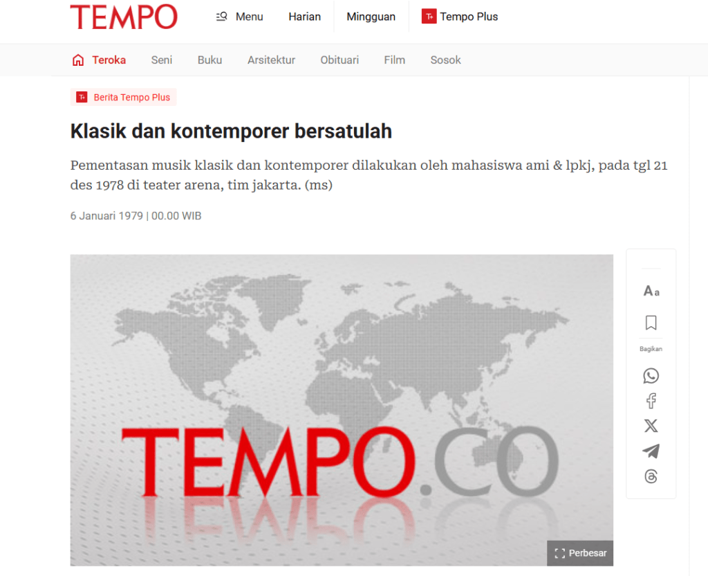 Pementasan musik klasik dan kontemporer dilakukan oleh mahasiswa AMI & LPKJ, pada tanggal 21 Desember 1978 di Teater Arena, TIM Jakarta.
