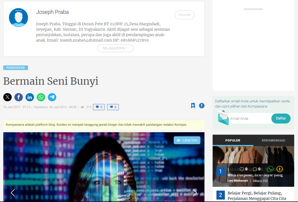 Ember plastik maupun kaleng bekas, gelas mineral atau galon, potongan bambu, velg motor atau sepeda dan gir rantai, sobekan kertas bekas yang diselingi perpaduan teriakan suara anak-anak atau tangisan anak, jika dibingkai menjadi bangunan kubah kompositoris akan mendekatkan anak akan kemuliaan sang maha pencipta dan lingkungan alam: kebangkitan imajinasi anak yang sangat inspiratif.